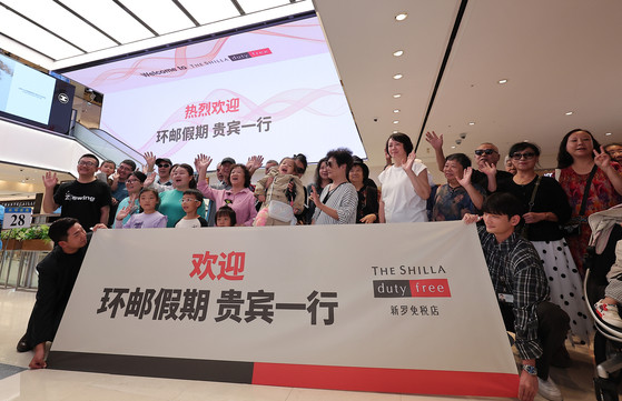 ▲중국 단체관광객의 무비자 입국이 시작된 지난달 29일 서울 중구 신라면세점 서울점에서 중국인 관광객들이 면세점 측에서 마련한 환영 행사를 즐기고 있다. 뉴스1 [출처:중앙일보] |