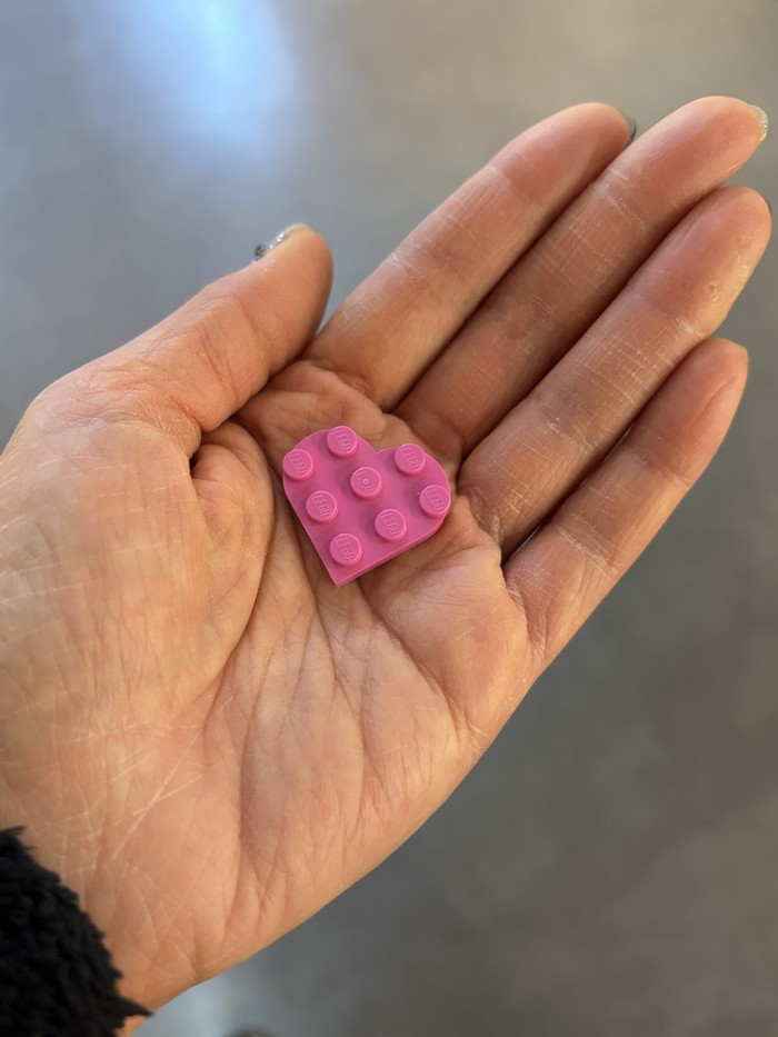 | ▲ 관람자 한분이 레고 작곡, 작가자 인 이수진 작가에게 선물한 하트 레고 |