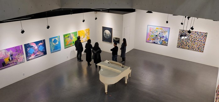 | ▲ 이수진 작가의 작품을 관람하고 있는 관람객들 |