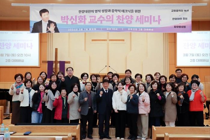 경기도 평택시 팽성읍에 소재한 성곡감리교회(담임목사 전덕순)는 지난 2026년3월7일(토)오전 10시, 본 교회 2층 본당에서 한세대학교 박신화 석좌교수를 강사로 찬양대원의 영적 성장과 음악적 테크닉을 위한 찬양세미나를 열고 마쳤다.