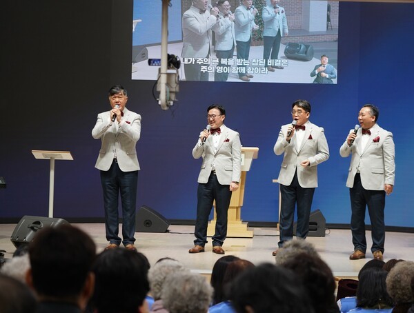 | ▲ 특송을 하는 극동방송 남성 중창단 |